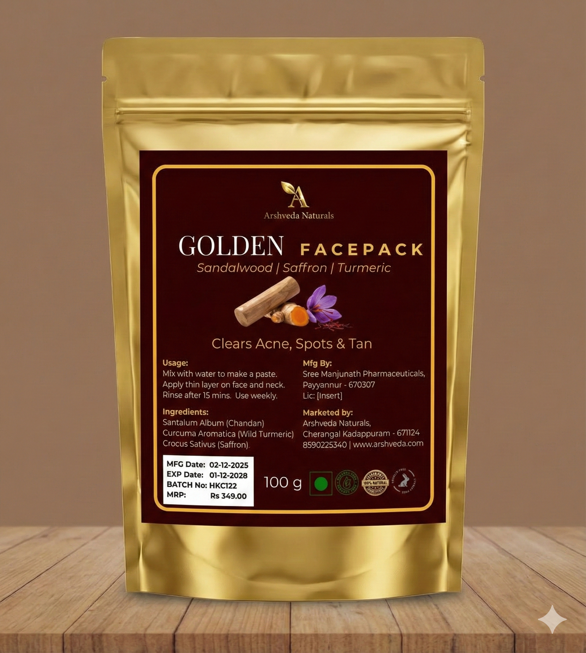 Golden Glow Face Pack (Haldi-Kumkum-Chandan) 100 g